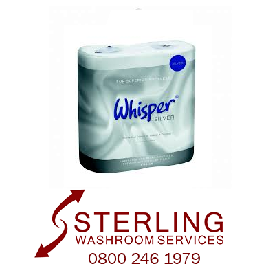 Whisper silver toilet rolls are pure pulp 2ply white toilet rolls, sold in cases of 40. Laminated and micro embossed to offer high quality. Our toilet rolls are the ideal choice for any washroom at home, in the office, or all types of commercial premises where standard toilet rolls are needed. Soft to the touch and exceptionally cost-effective working out at 35p per roll.